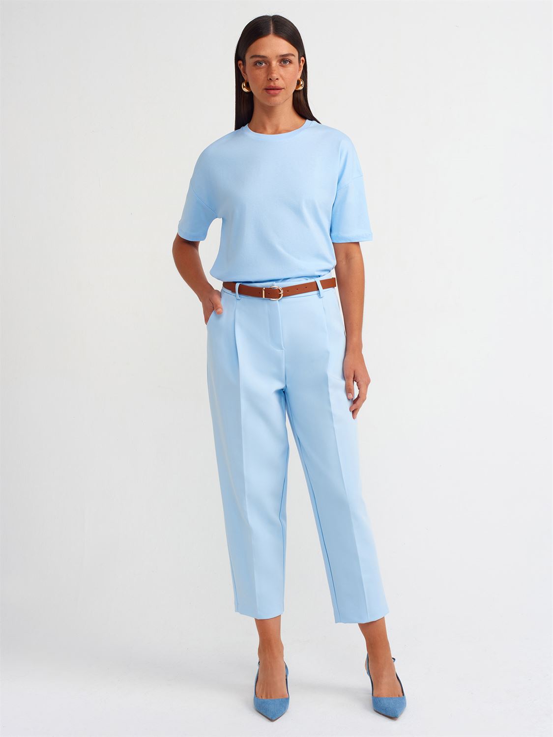 71533 Carrot Fit Pants-Blue with Belt